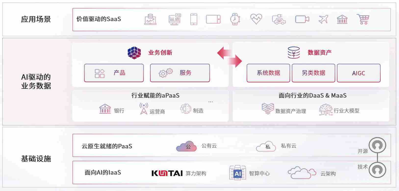 数字时代,,,围绕企业数字化转型的关键要素,,,365钱包数码开创性的提出数云融合战略和技术体系框架,,,,着力在云原生、、、数字原生、、、、AI原生和信创产业上架构产品和服务能力,,,为处在不同数字化转型阶段的快消零售、、、汽车、、金融、、、医疗、、、、政企、、、、教育、、、运营商等行业客户提供泛在的敏捷IT能力和融合的数据驱动能力,,,,构建跨界融合创新的数字业务场景和新业务模式,,,助力企业级客户建立面向未来的核心能力和竞争优势,,,全面推动社会的数字化、、、、智能化转型升级。。